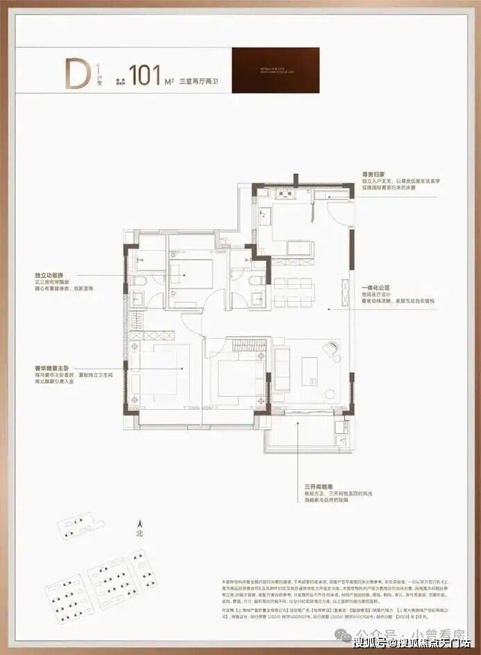 以主力建面约101㎡3房2卫户型为例,得房率高达约80-81%,实际使用空间高达约80-82㎡,甚至超过了市面上部分洋房产品。